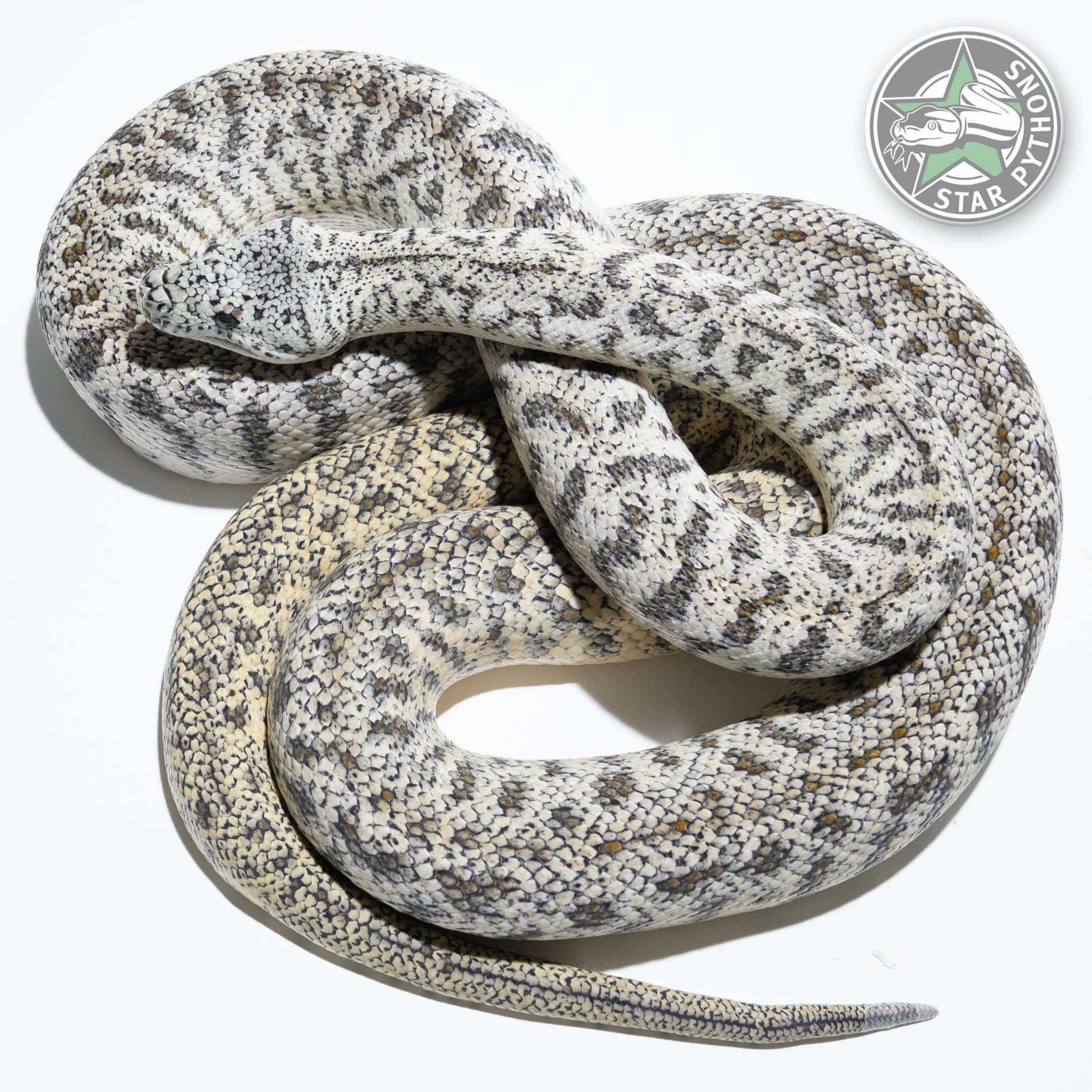 Snow Granite Teppichpython Weibchen (Morelia spilota) – dreifach rezessive Kombination aus Darwin-Albino, Axanthic und IJ-Granite, StarPythons Zuchttier