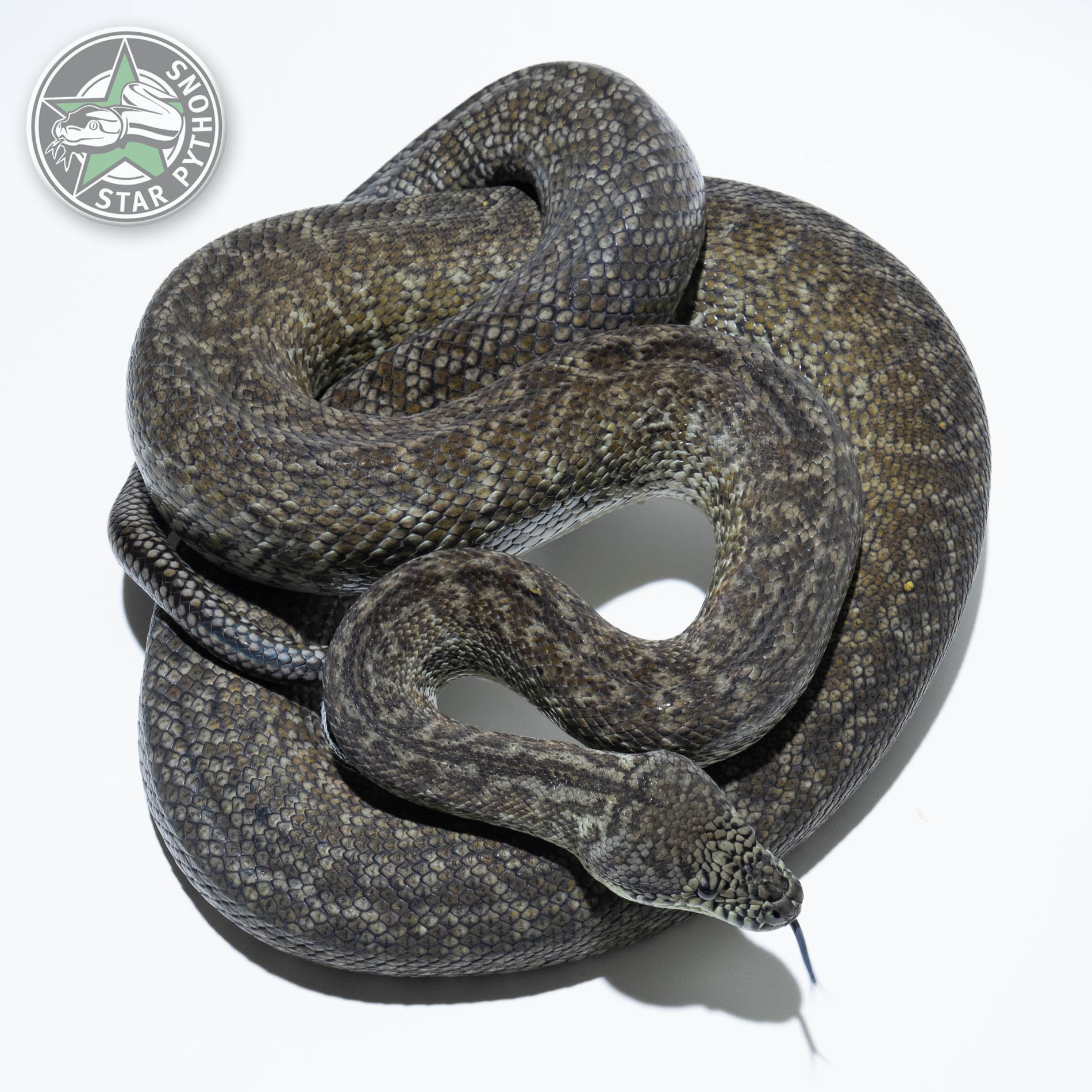 Snow Granite Teppichpython Männchen (Morelia spilota) – dreifach rezessive Kombination aus Darwin-Albino, Axanthic und IJ-Granite, StarPythons Zuchttier